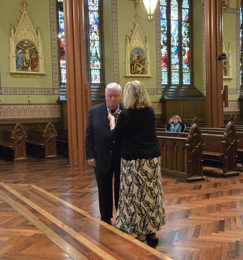 Faithful Comptroller Larry DeFrancesco awaits his jewel standing with his wife
