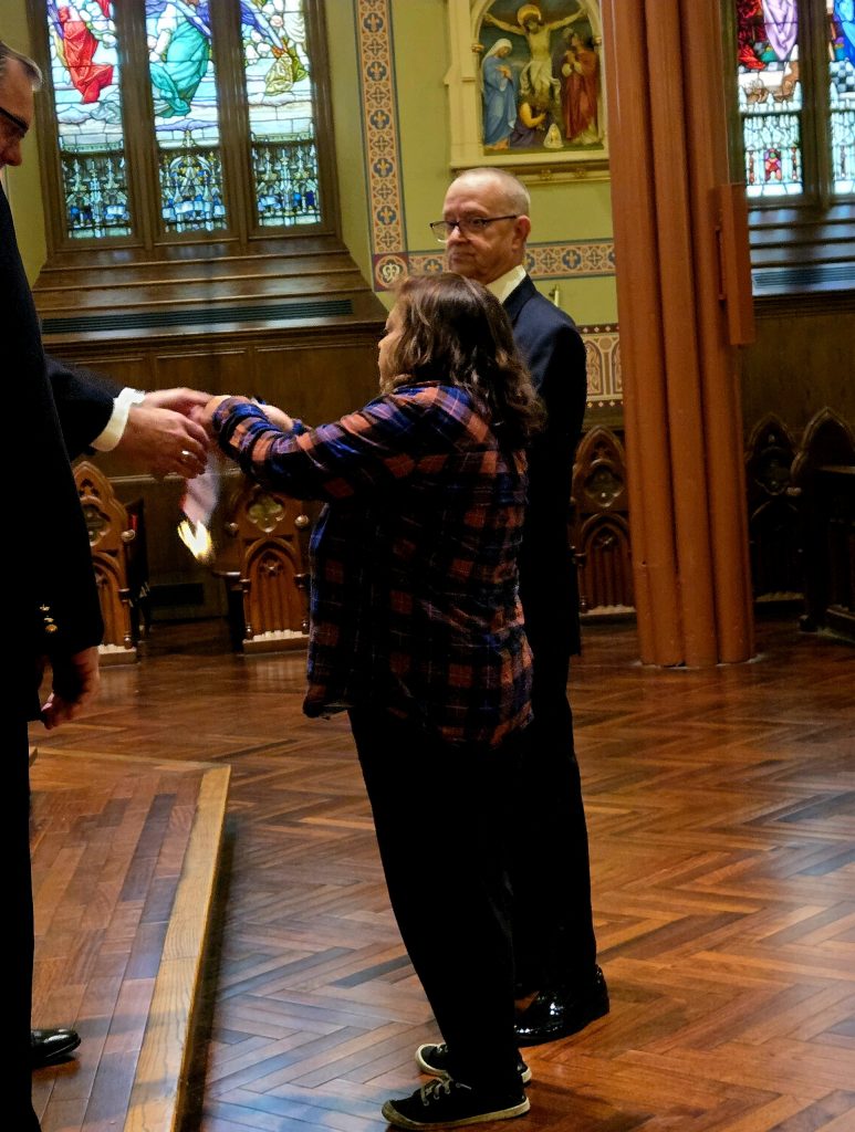 Faithful Trustee Michael Muttitt gets his jewel placed on properly by his wife