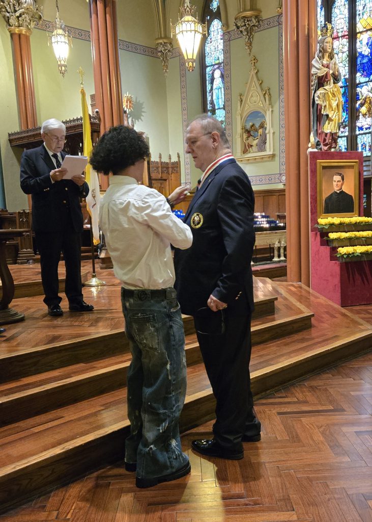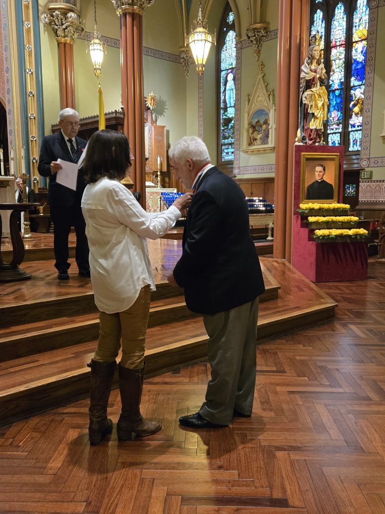 Faithful Scribe Frank Quadrino gets assistance with his jewel by his son Christian